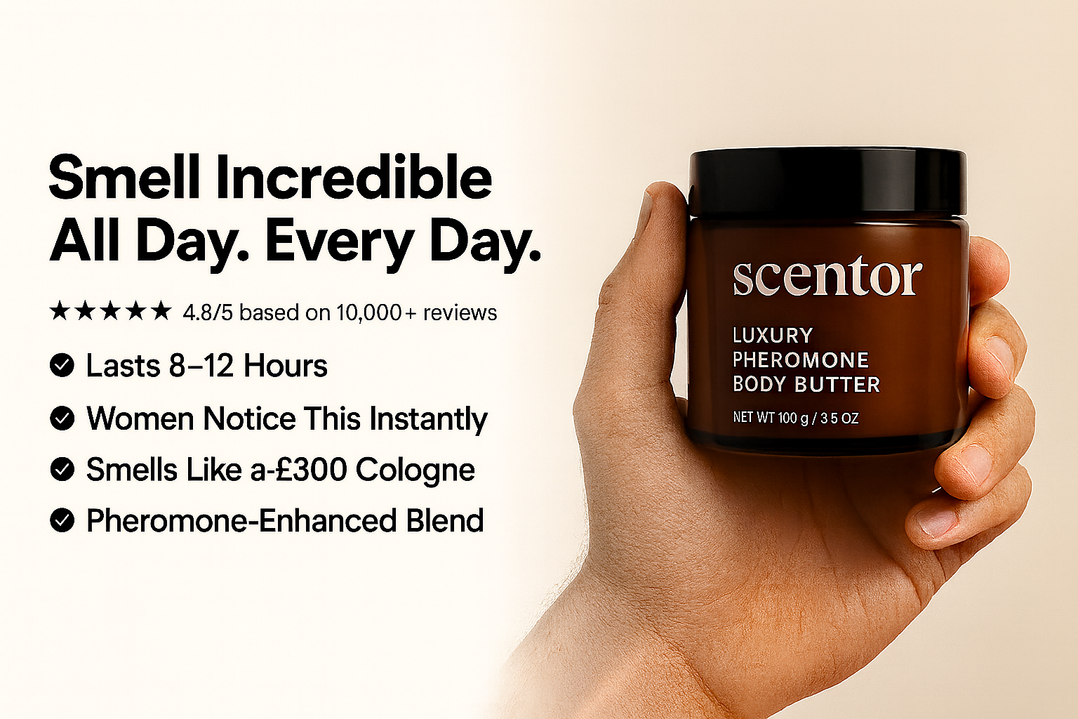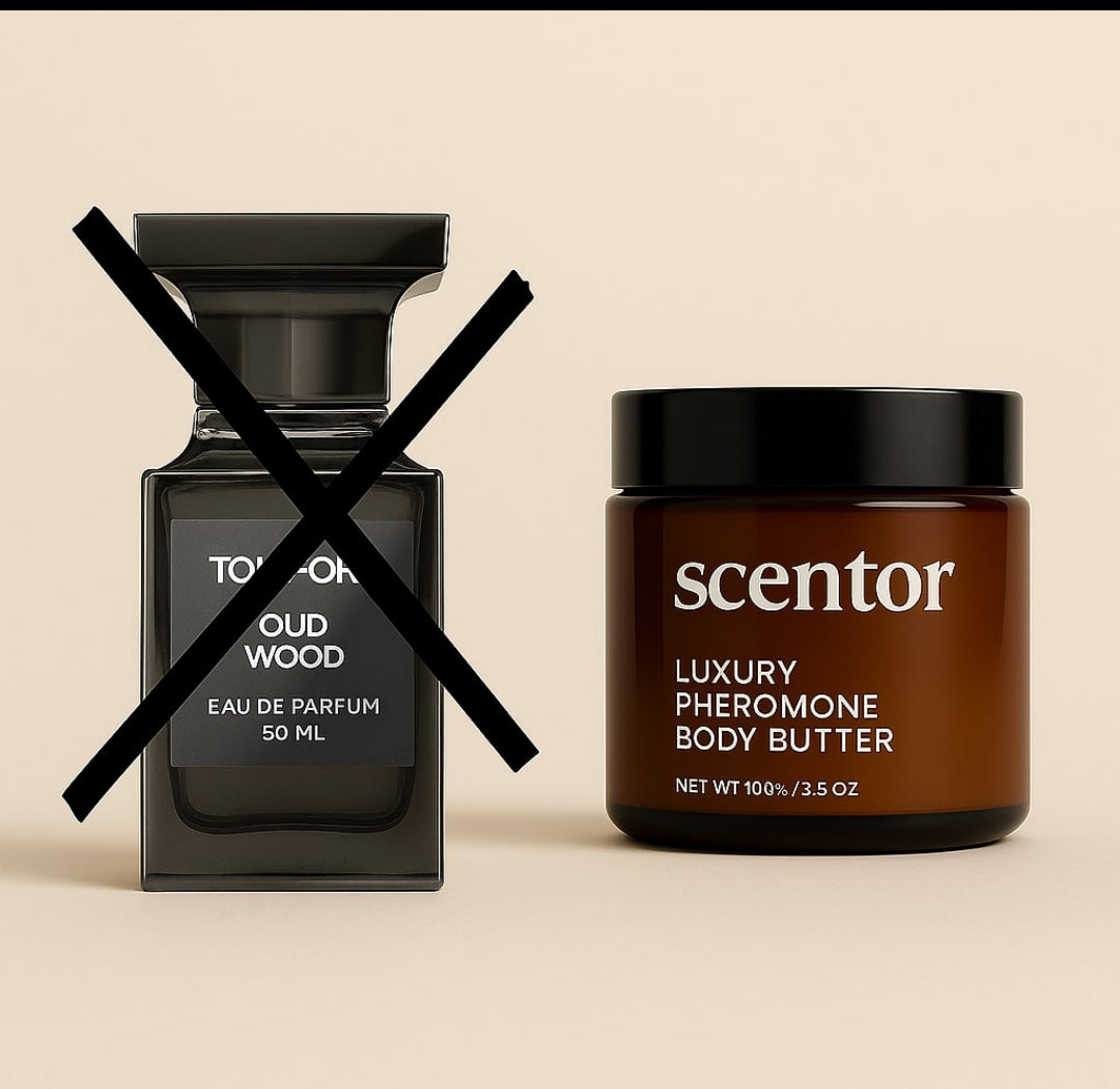 Scentor delivers the same deep, luxurious Oud-inspired aroma without the luxury price tag. Our pheromone-enhanced body butter is rich, long-lasting, and designed to get noticed. No harsh alcohol, no overpriced bottles—just a smooth, moisturising formula that keeps you smelling incredible for 8–12 hours.